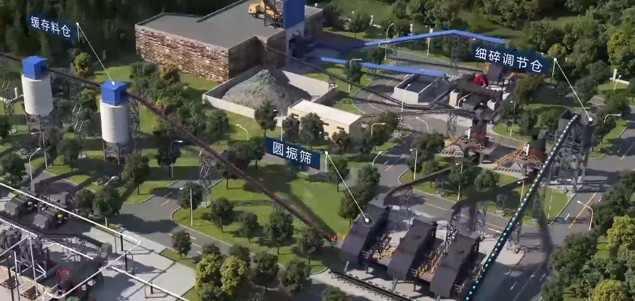 流程:采用三段一閉路破碎(顎破+圓錐破+篩分閉環),結合圓振篩控制粒度。